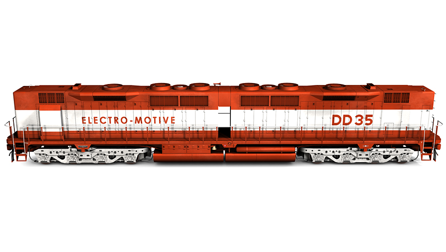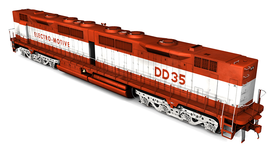 The EMD General Purpose 35 locomotive was introduced in 1963. Following the GP35's introduction, EMD introduced the Double Diesel 35 cabless booster. The DD35 booster was created at a request from Union Pacific in their search for the ideal diesel locomotive. Essentially two GP35s on a common frame, the DD35 was originally intended to only be used as a booster unit. However, following UP's initial order of 25 DD35 boosters and 22 matching GP35s, another order of 15 DD35 boosters was changed to cab equipped units. Utilizing the "spartan" cab that was originally used on the GP35, the DDA35 was delivered in 1965. The DDA35 was a further development of the double diesel concept. In order to make room for the cab, the radiators were fit into a smaller area than on the DD35. This moved the radiators upward and ultimately gave them their distinct flared look.