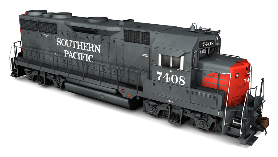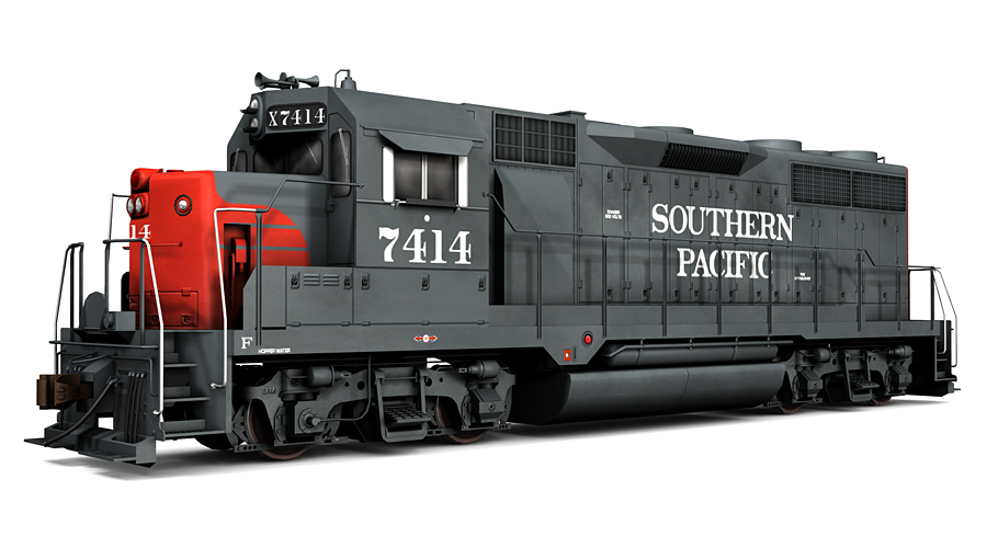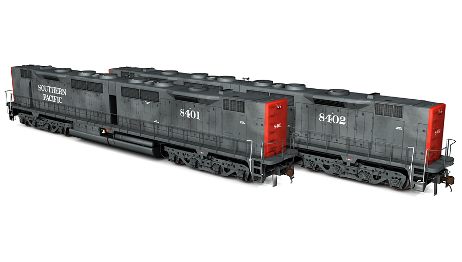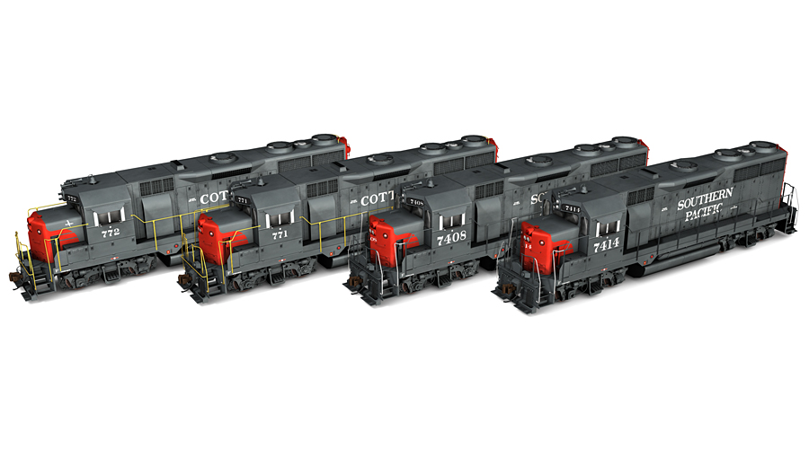 Southern Pacific EMD Double Diesel and General Purpose 35 locomotives, as-delivered 1963. Inlcudes SP GP35s 7408 and 7414; SSW GP35s 771 and 772; DD35s 8401 and 8402.