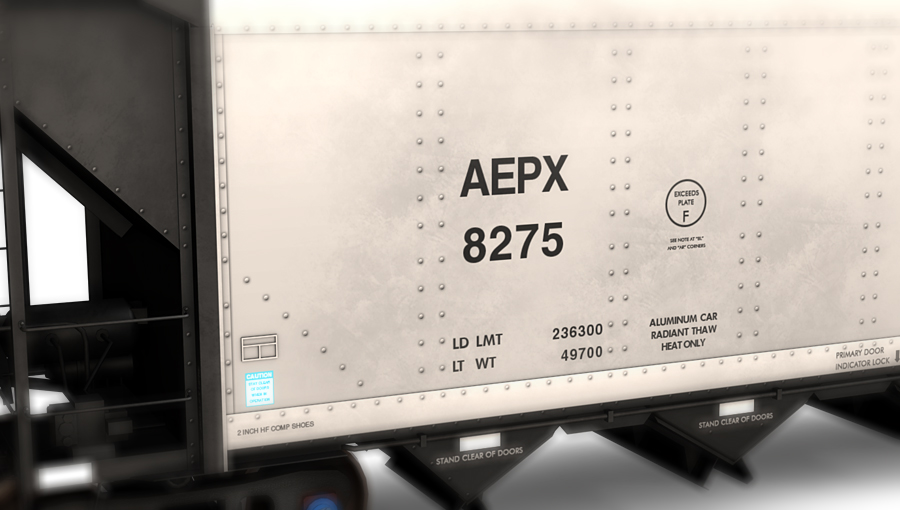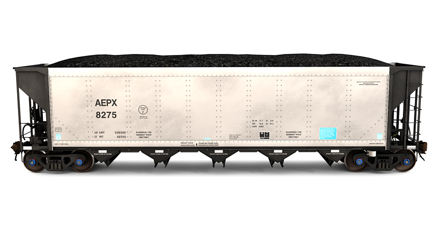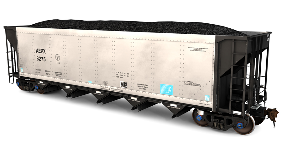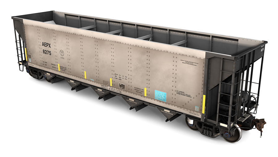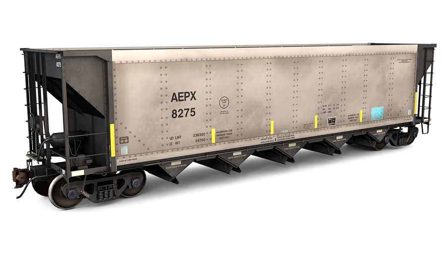American Electric Power (AEPX) FreightCar America AutoFlood II Aluminum Coal Hopper. Includes two (2) skins, weathered and new.