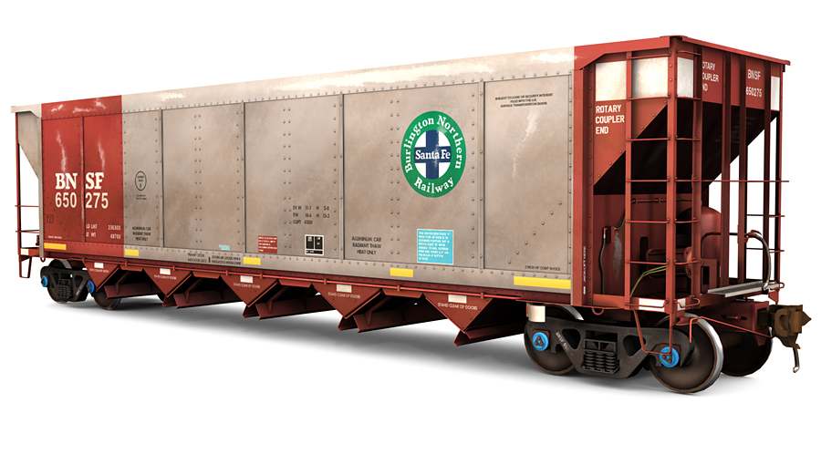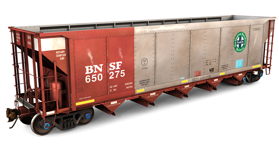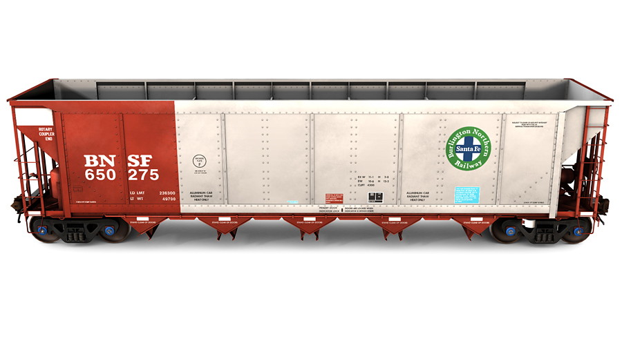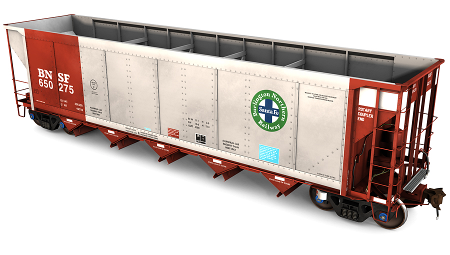 Burlington Northern Santa Fe (Mineral Red) FreightCar America AutoFlood II Aluminum Coal Hopper. Includes two (2) skins, weathered and new.