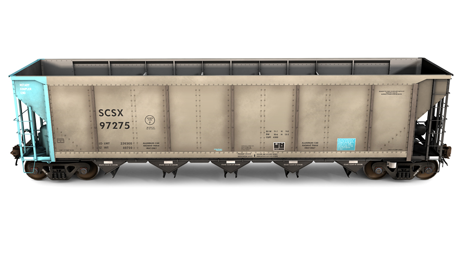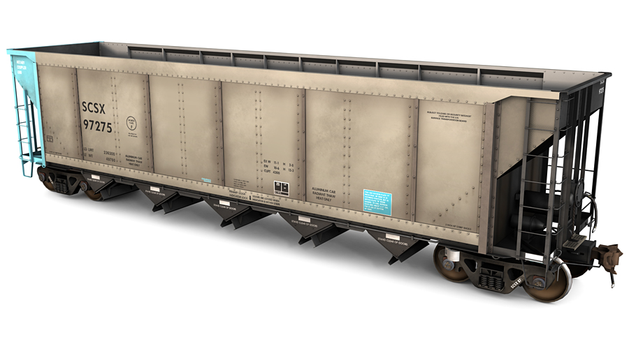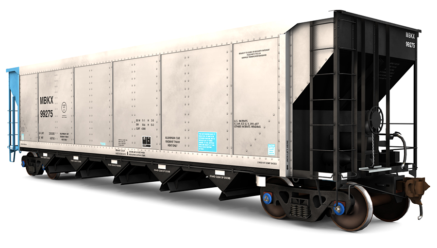 Mitsui Rail Capital (MBKX) and CIT Group (SCSX) FreightCar America AutoFlood II Aluminum Coal Hopper. Includes two (2) skins, weathered and new.