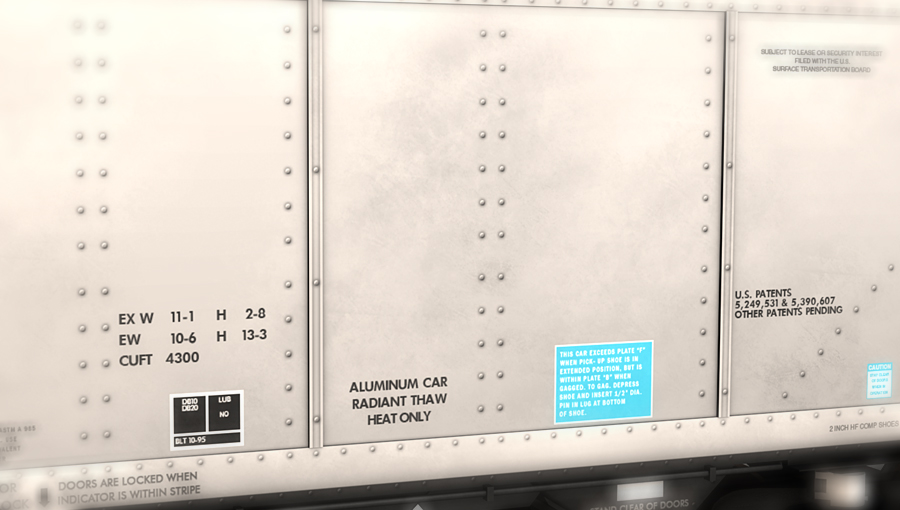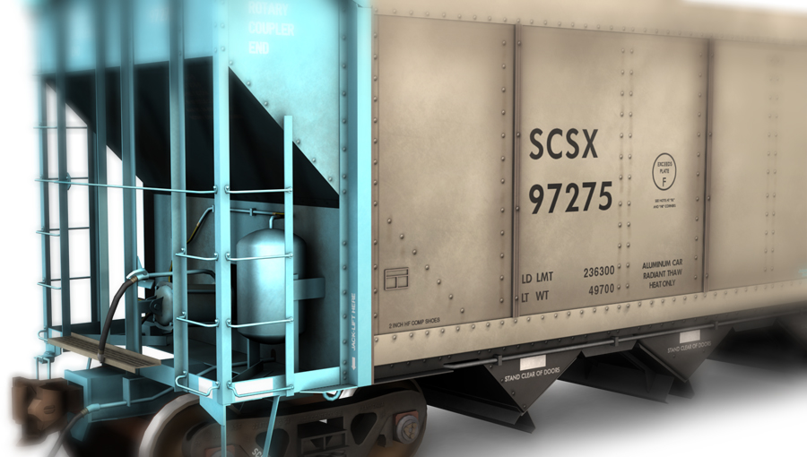 FreightCar America, formerly known as Johnstown America, is most recognized for their construction of aluminum freight cars for North American railways. The benefits behind aluminum railcars are their ability to hold more product and the possibility of increased fuel savings because of aluminum's light weight as compared to a steel-built freight car. FreightCar America is best known for their aluminum coal hoppers, the AutoFlood II is no exception. The AutoFlood can be unloaded through either the bottom doors, or through a rotary dumper.