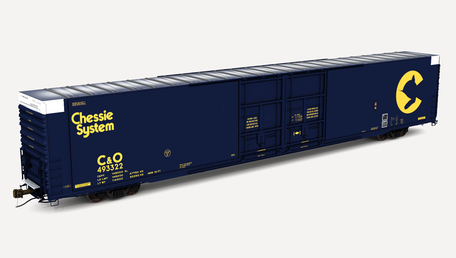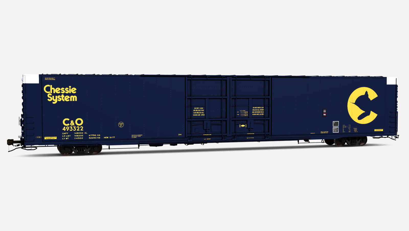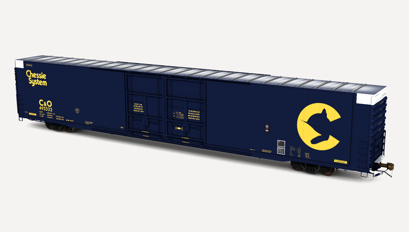 Chesapeake and Ohio Greenville Steel Car 86'6" auto parts boxcar. Includes one (1) boxcar skin.