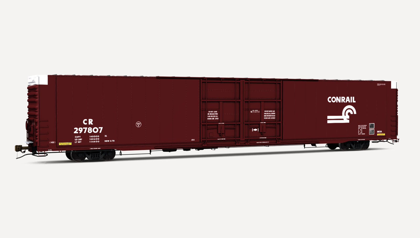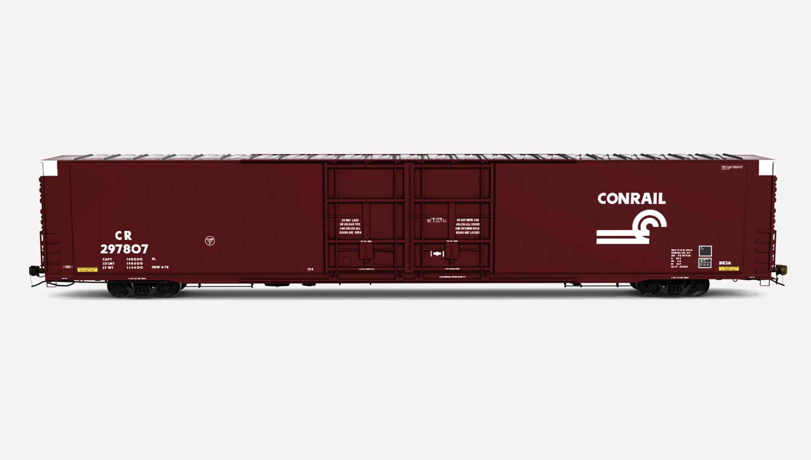Conrail Greenville Steel Car 86'6" auto parts boxcar. Includes one (1) boxcar skin.