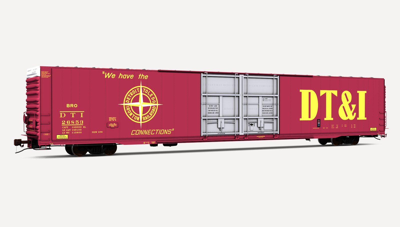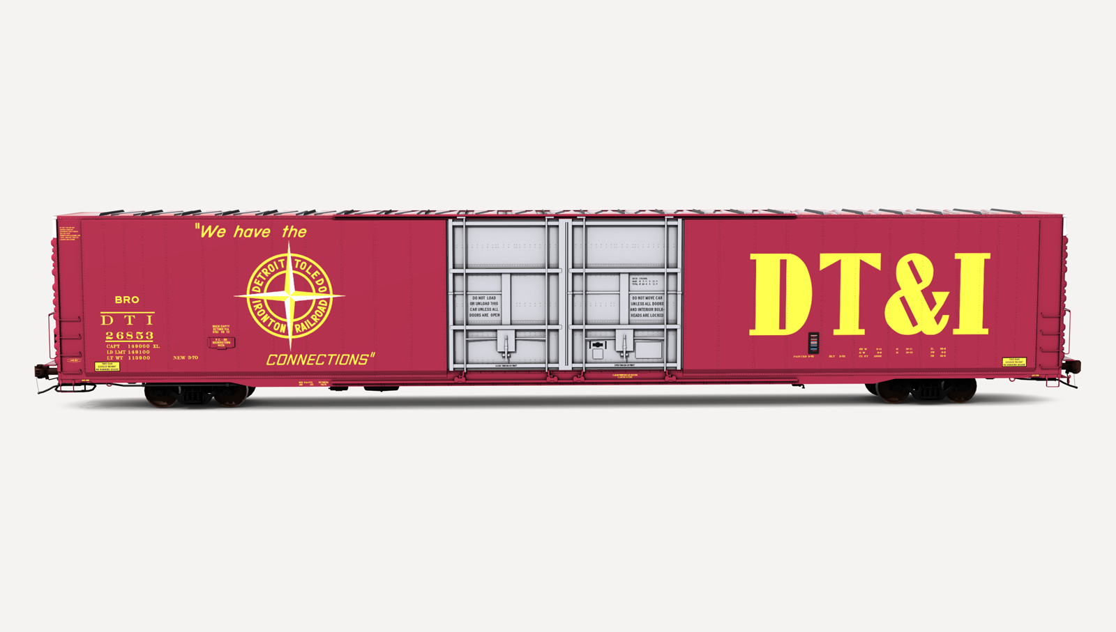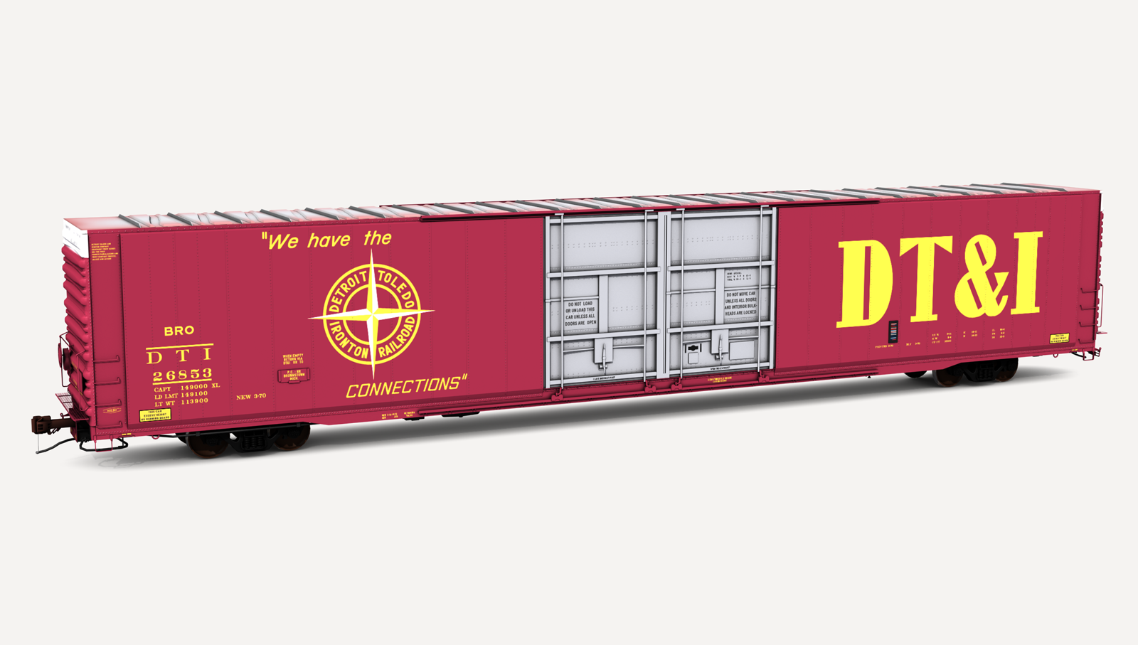Detroit Toledo & Ironton Greenville Steel Car 86'6" auto parts boxcar. Includes one (1) boxcar skin.