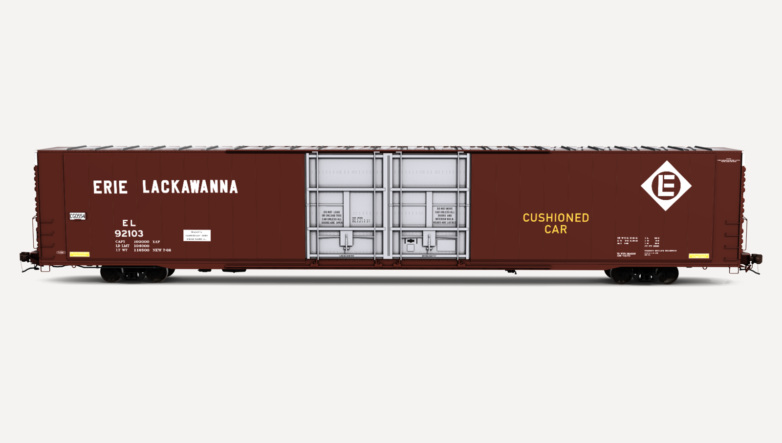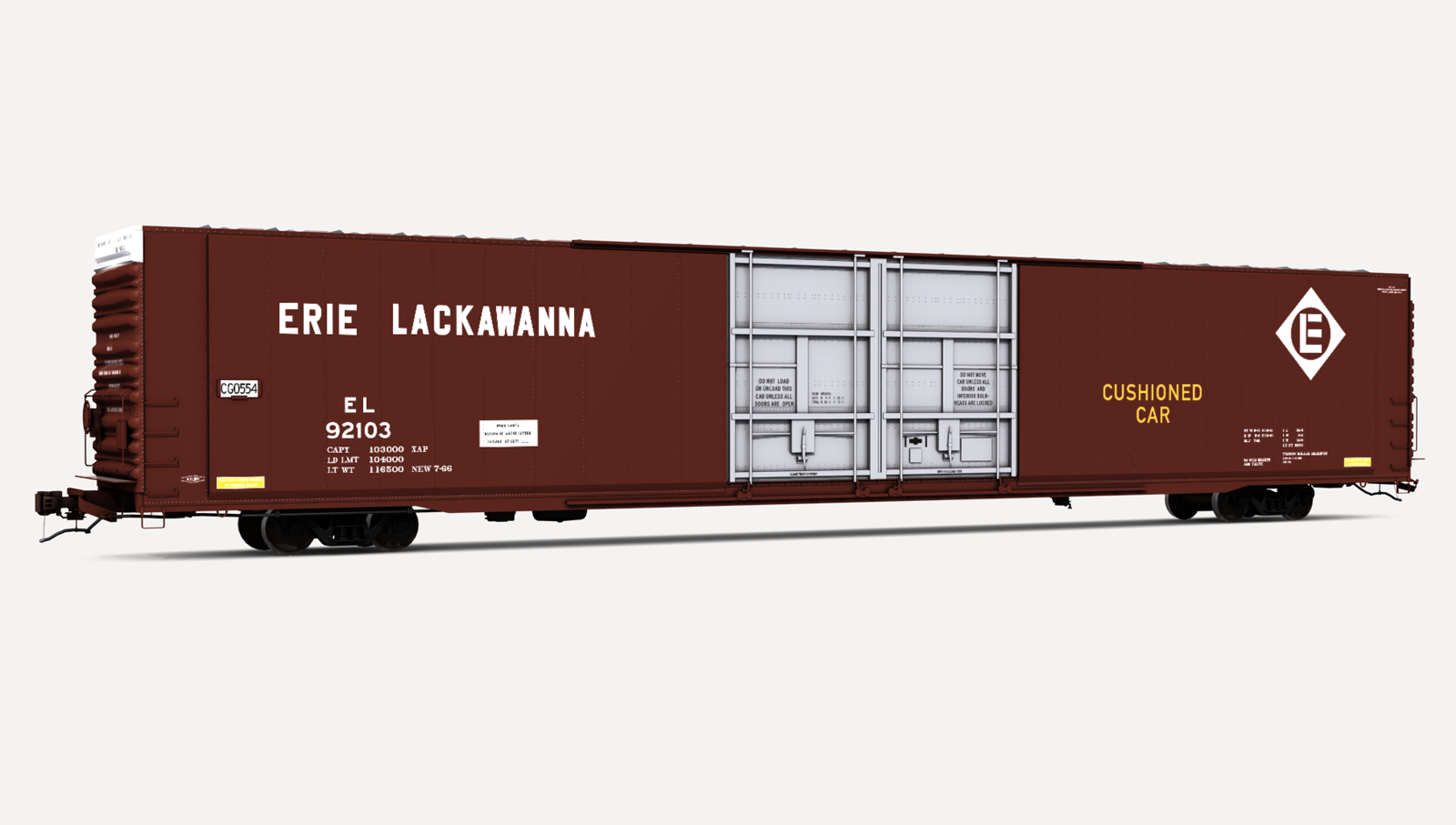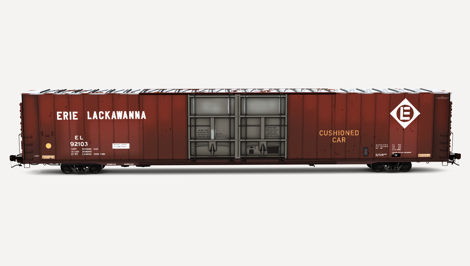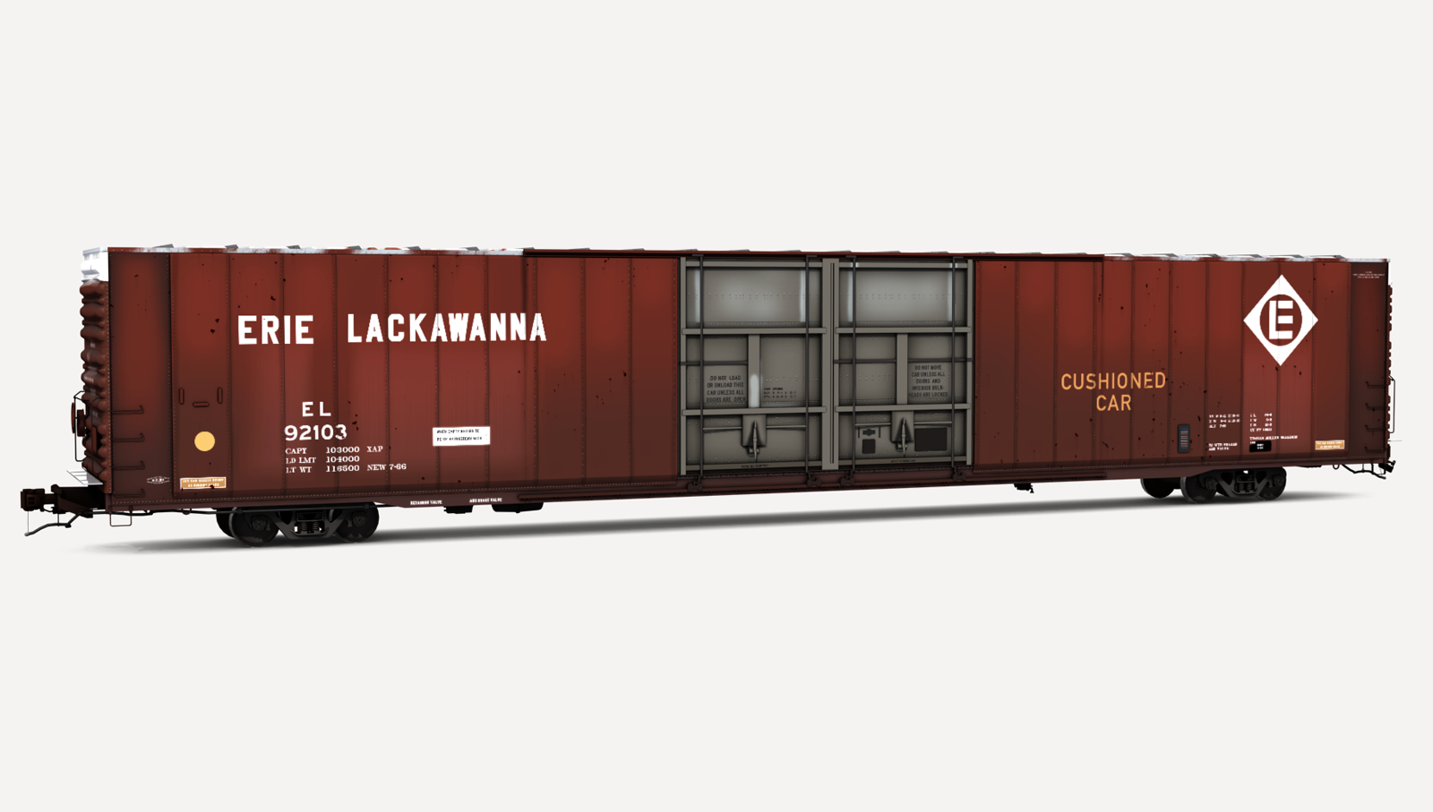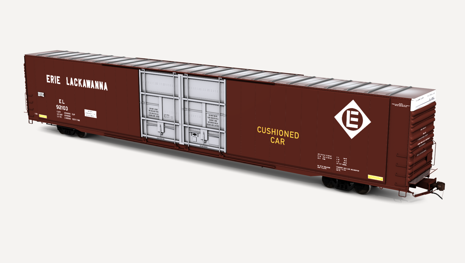 Erie Lackawanna Greenville Steel Car 86'6" auto parts boxcar. Includes two (2) boxcar skins.