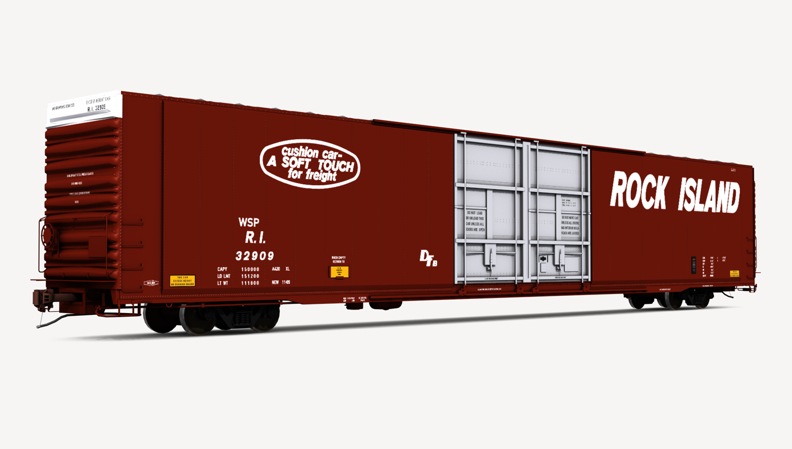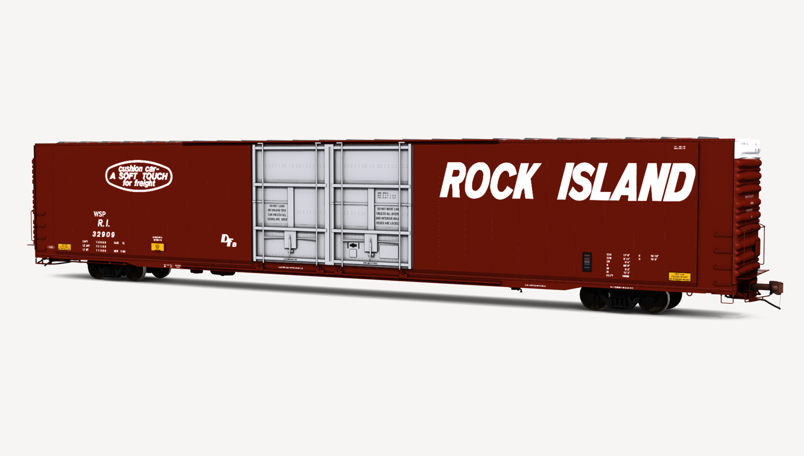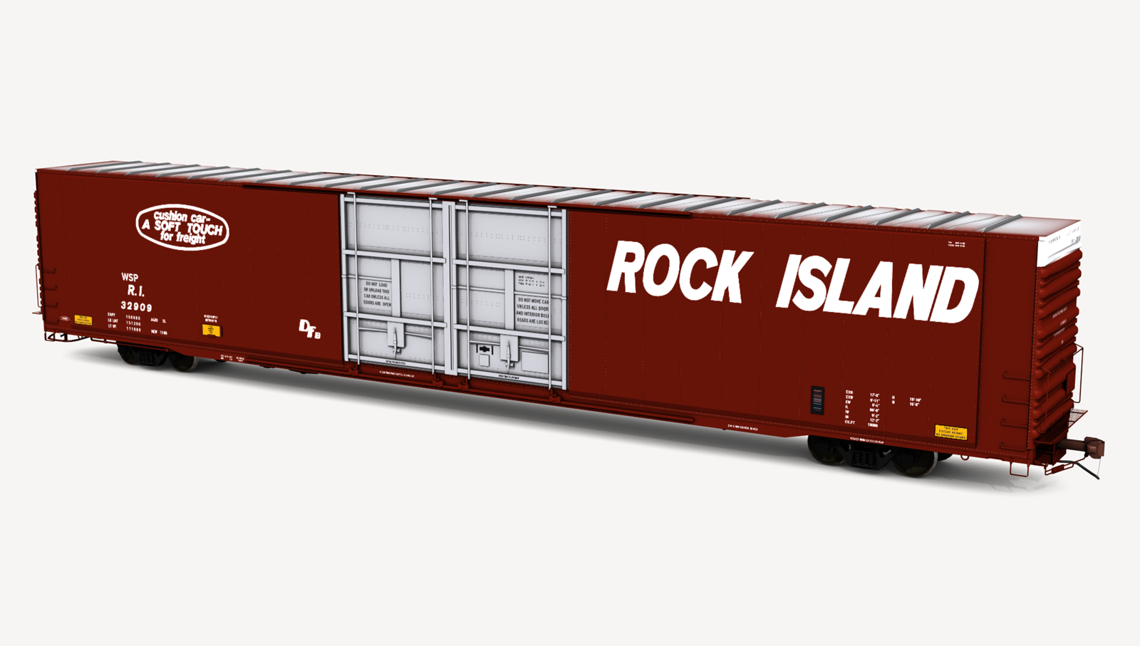 Rock Island Greenville Steel Car 86'6" auto parts boxcar. Includes one (1) boxcar skin.