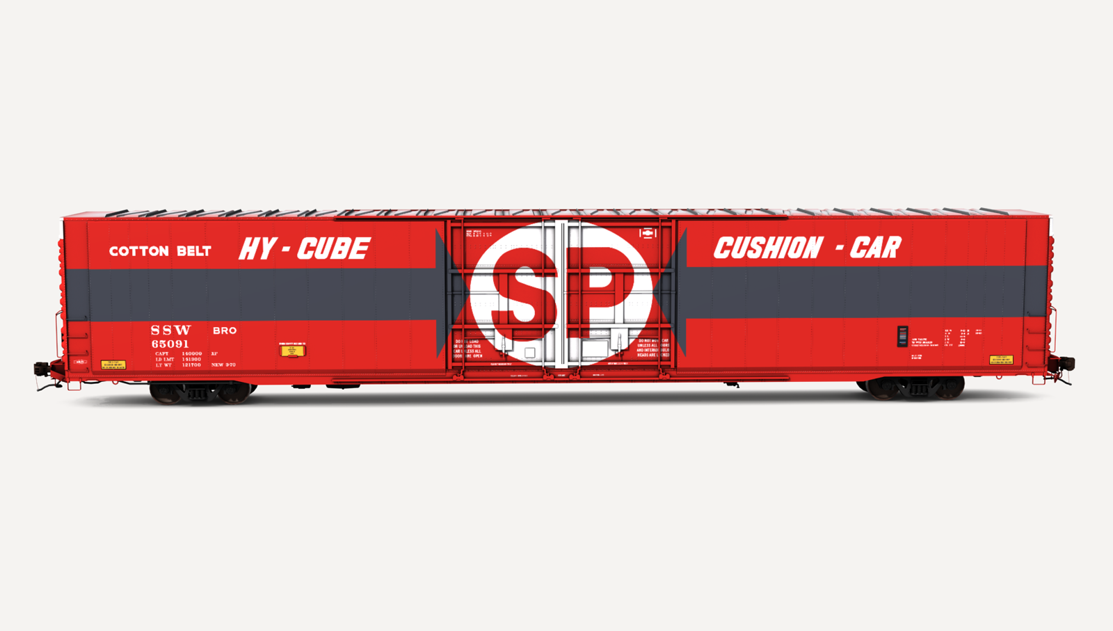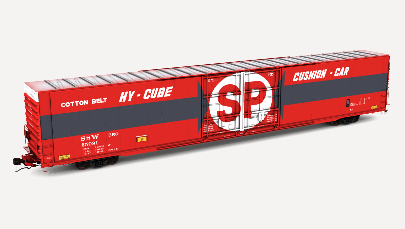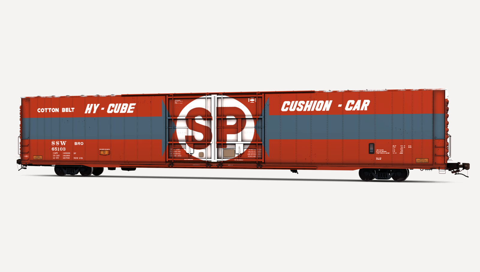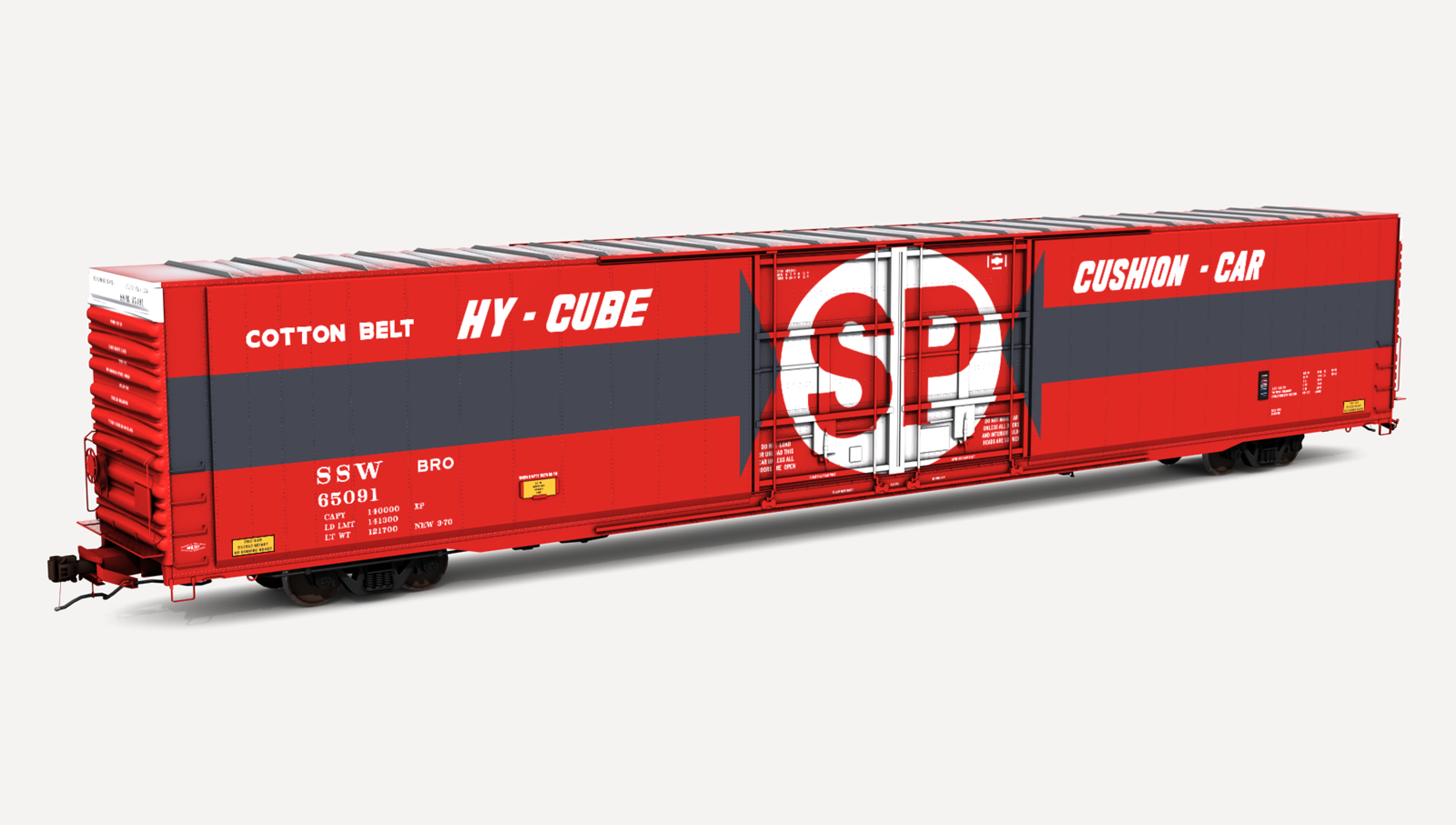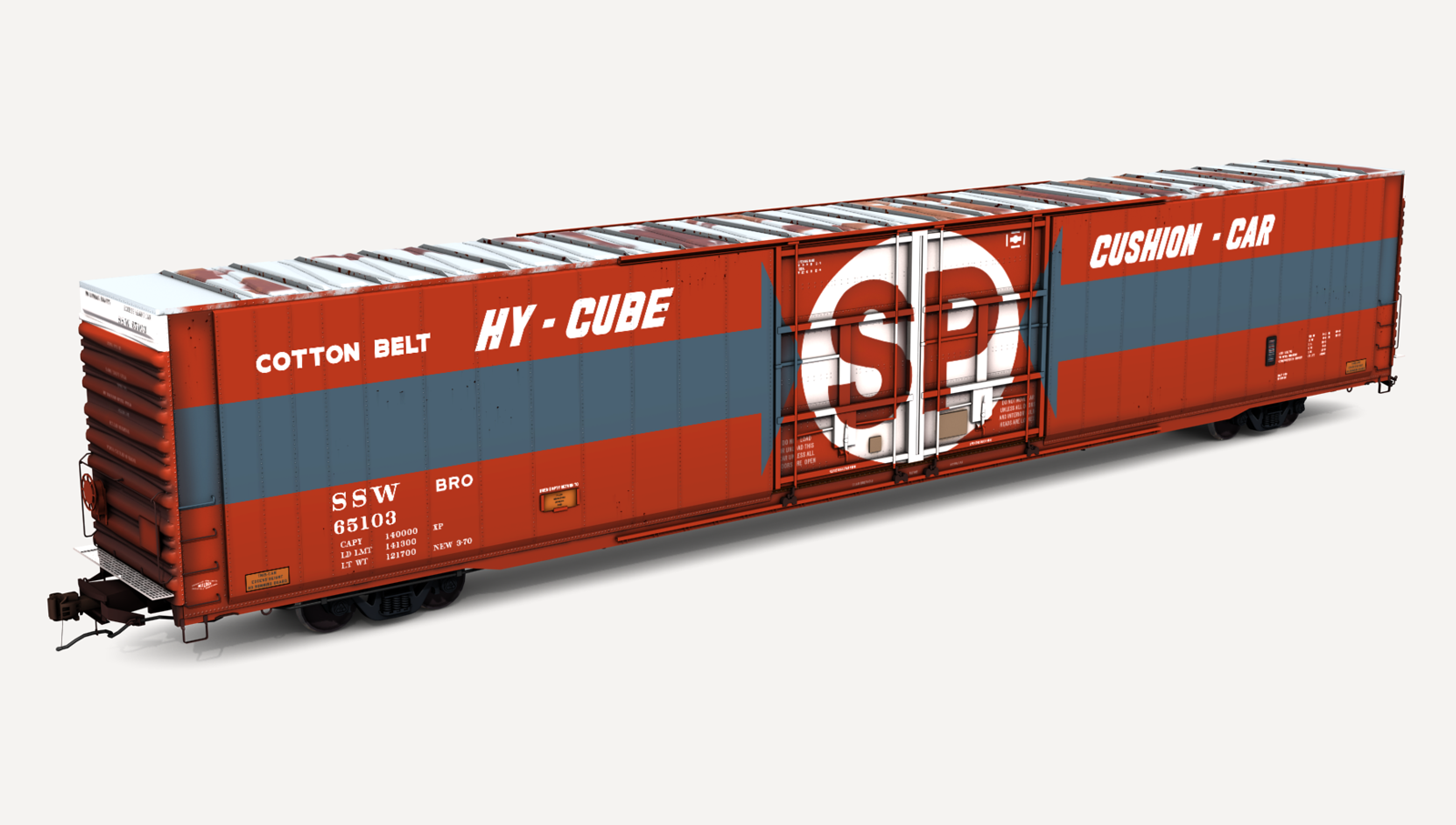 St. Louis Southwestern Greenville Steel Car 86'6" auto parts boxcar. Includes two (2) boxcar skins.