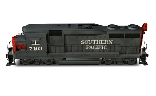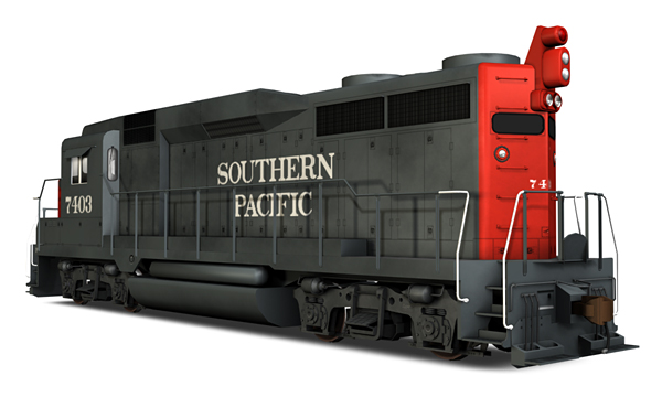 Southern EMD General Purpose 30 locomotive, road number 7403. Locomotive features animated cooling fans, animated wheels, custom horn and bell sounds, bump-mapped textures, and level-of-detail reduction meshes.