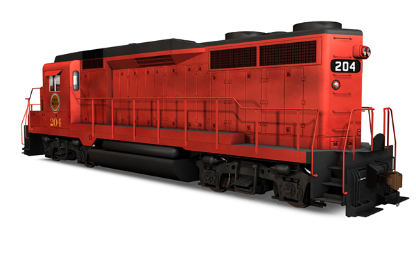 Chicago Great Western EMD General Purpose 30 locomotive, road number 947. Locomotive features animated cooling fans, animated wheels, custom horn and bell sounds, bump-mapped textures, and level-of-detail reduction meshes.