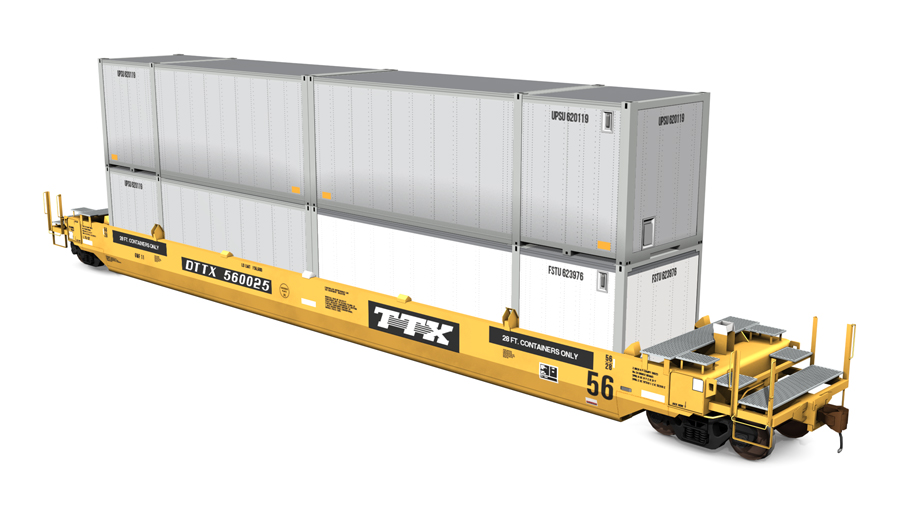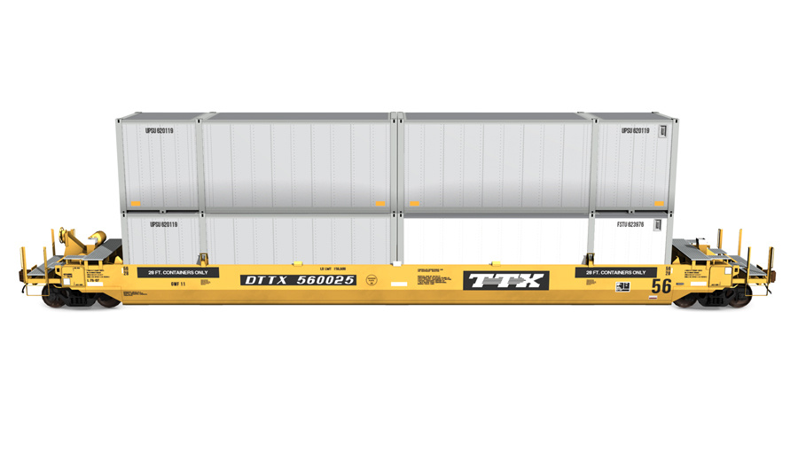 2015 Gunderson Husky Stack 2+2. Includes two (2) UPS containers. Containers can be used as scenery objects.
