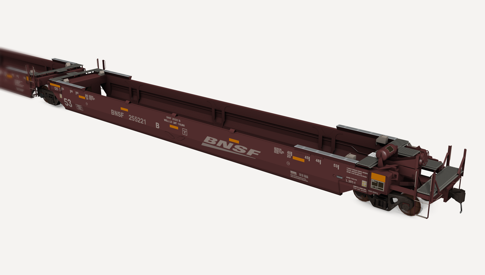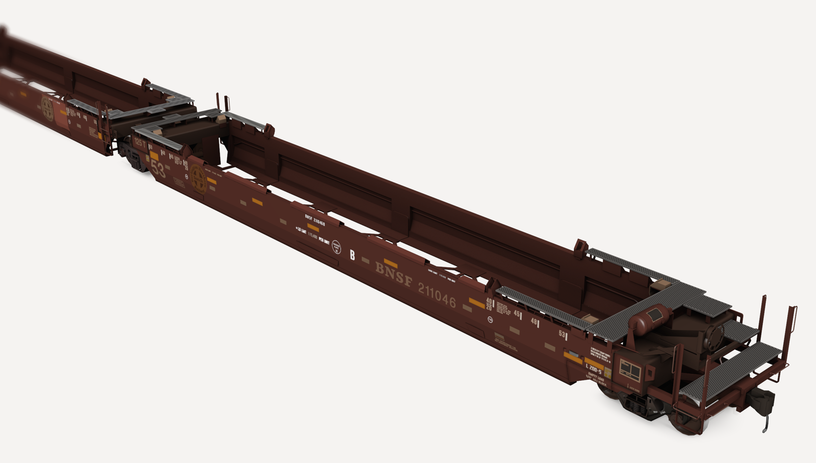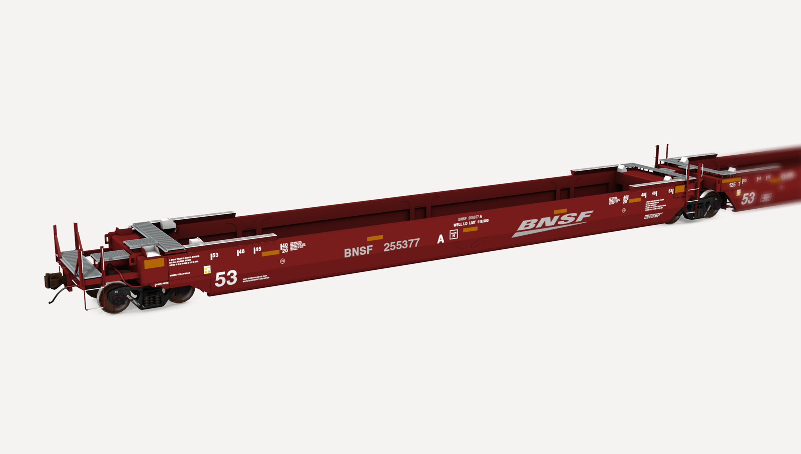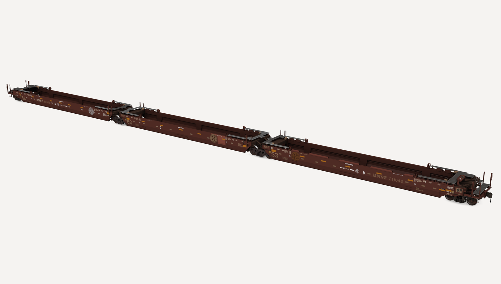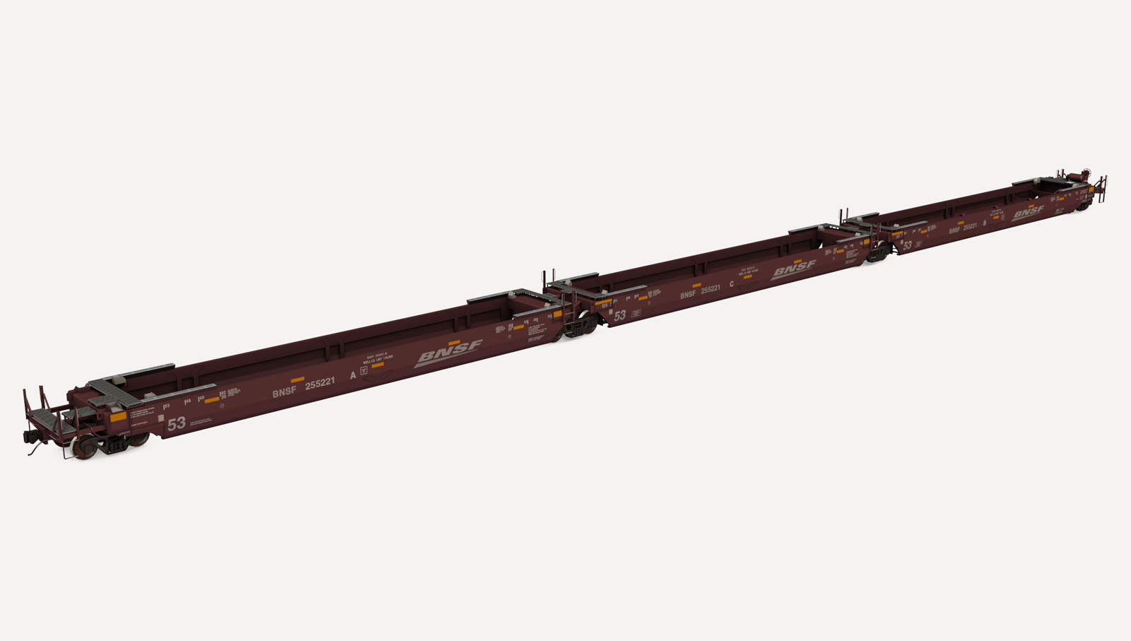 BNSF Gunderson Maxi-Stack IVs. Includes three (3) roadnumbers. No containers are included.