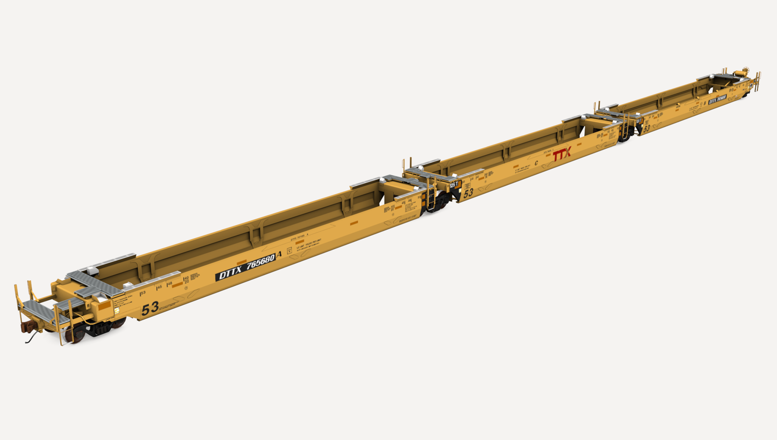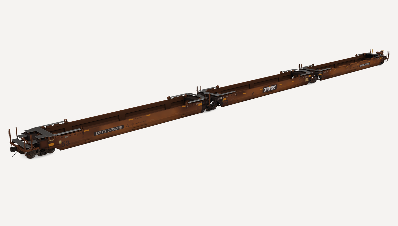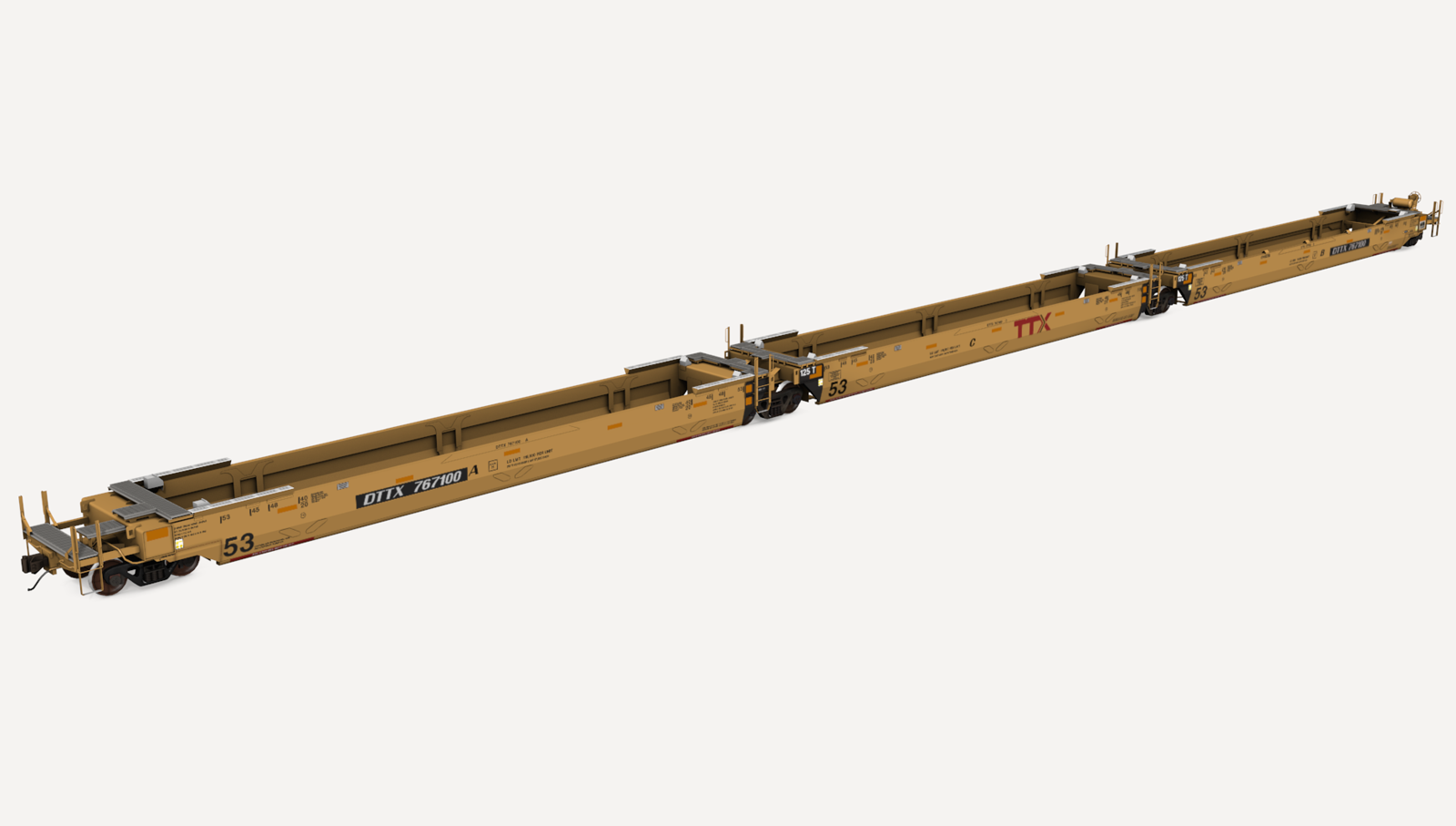 TTX Gunderson Maxi-Stack IVs. Includes four (4) roadnumbers. No containers are included.