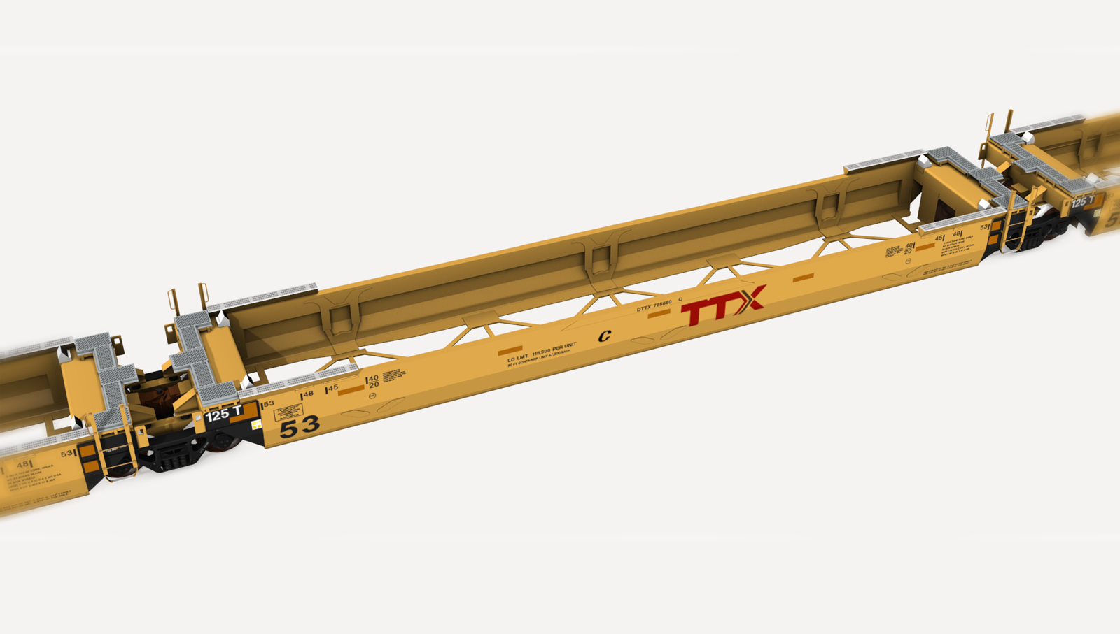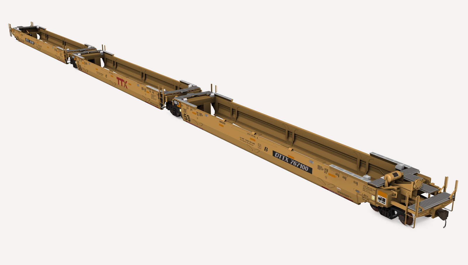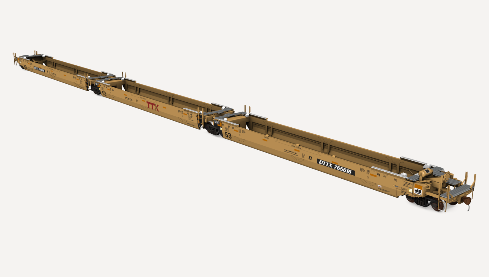 TTX Gunderson Maxi-Stack IVs. Includes four (4) roadnumbers. No containers are included.