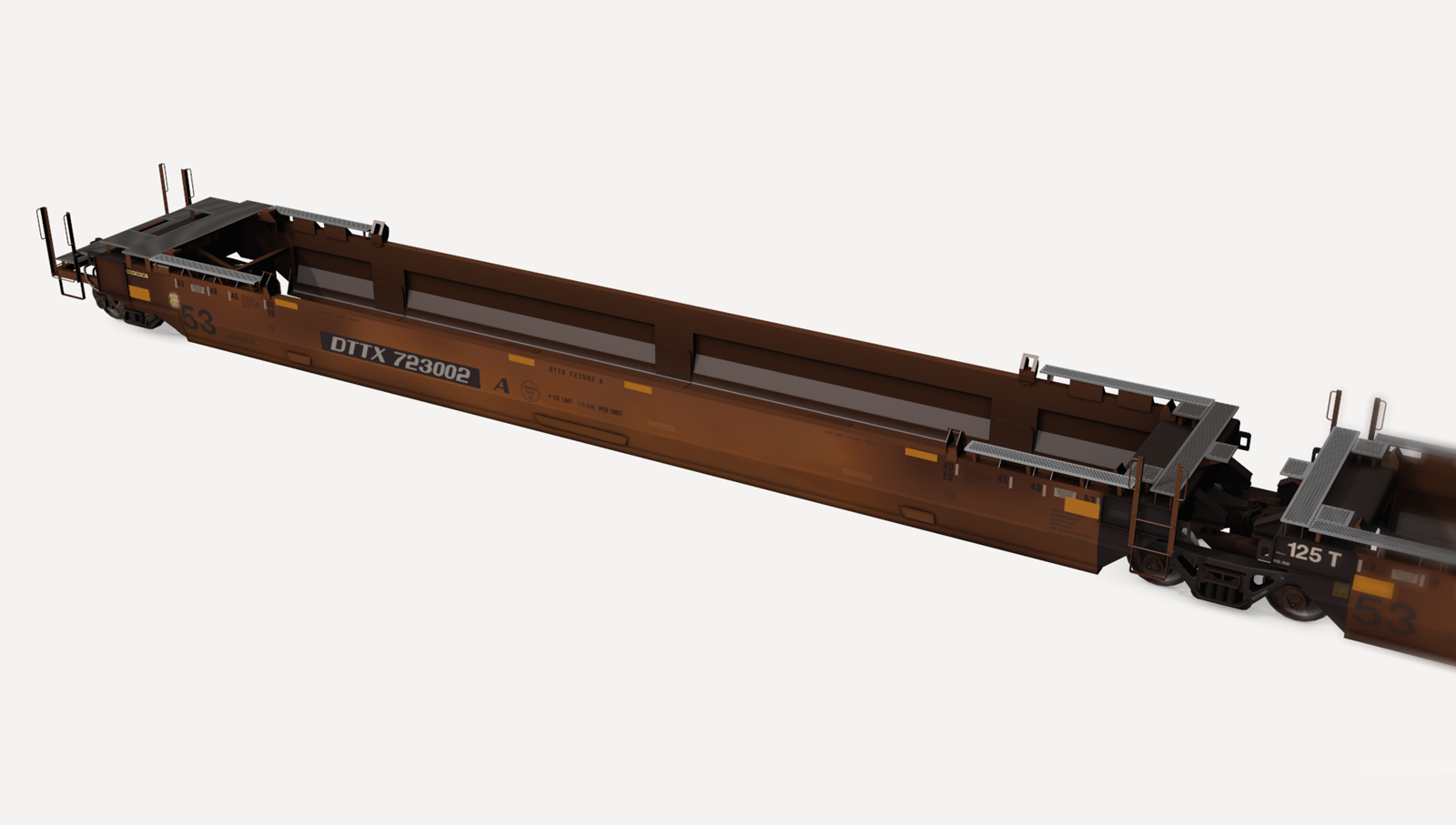 The Gunderson Maxi-Stack IV, introduced in 1999, is the contemporary mainstay of modern domestic intermodal rail car fleets. The Maxi-Stack IV is a 3-unit articulated well car that utilizes 70 ton trucks at the ends, and 125 ton trucks at the articulated connectors.