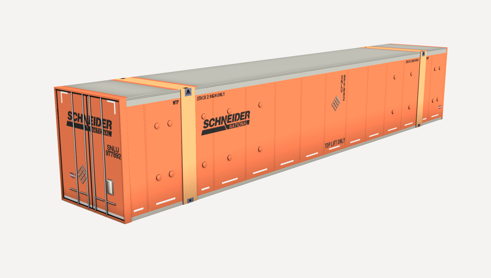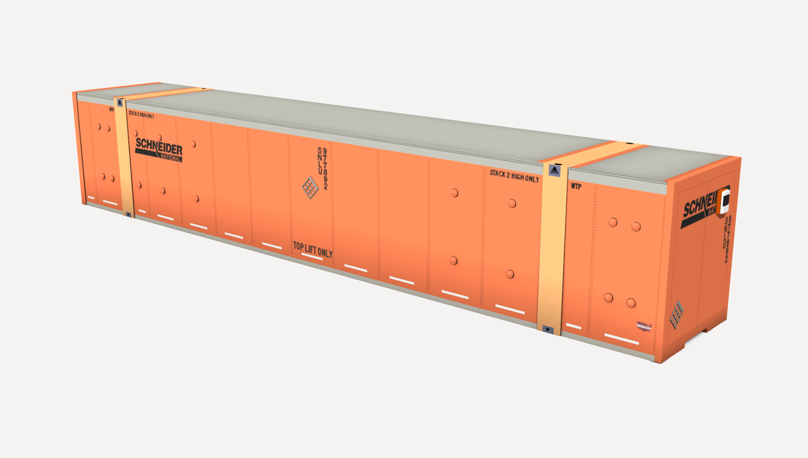 The 53-foot long by 102-inch wide domestic container is the backbone of contemporary intermodal fleets. Modern container fleets come in a mix of railroad-owned and third-party logistics (3PL) providers. The majority of containers are manufactured overseas in China with CIMC and Singamas being two of the biggest manufacturers.