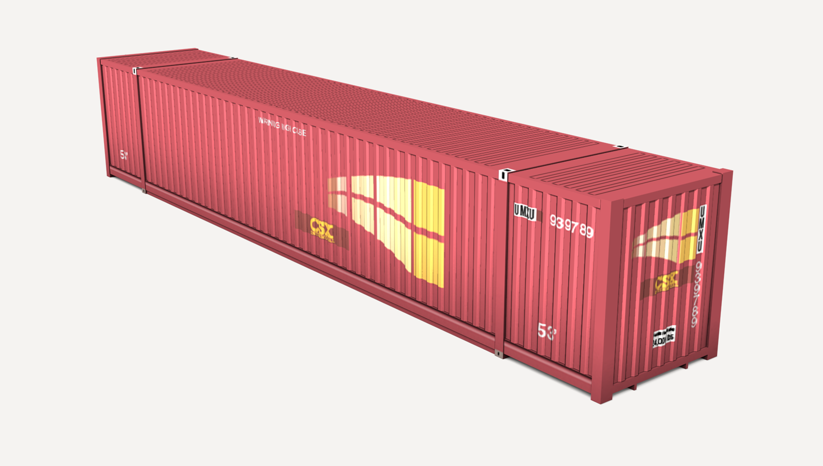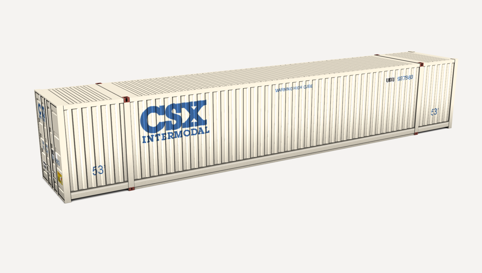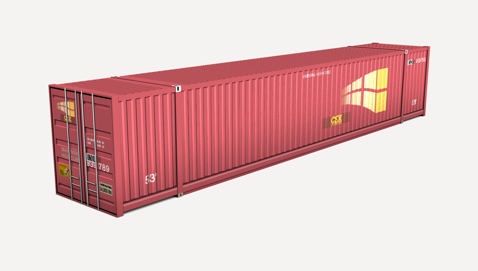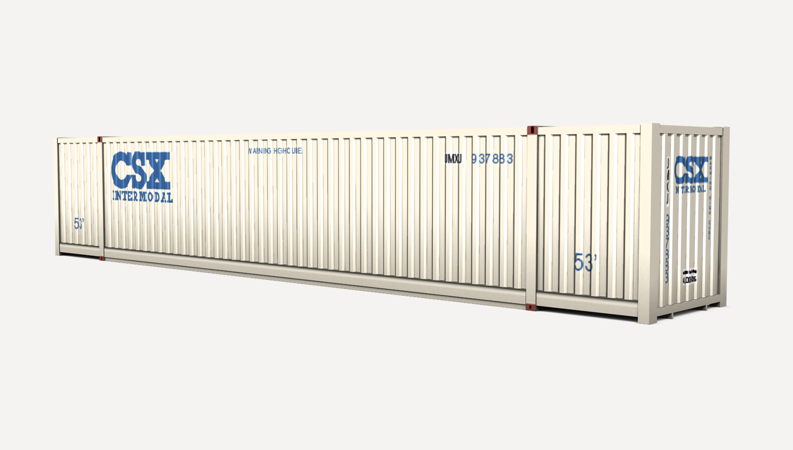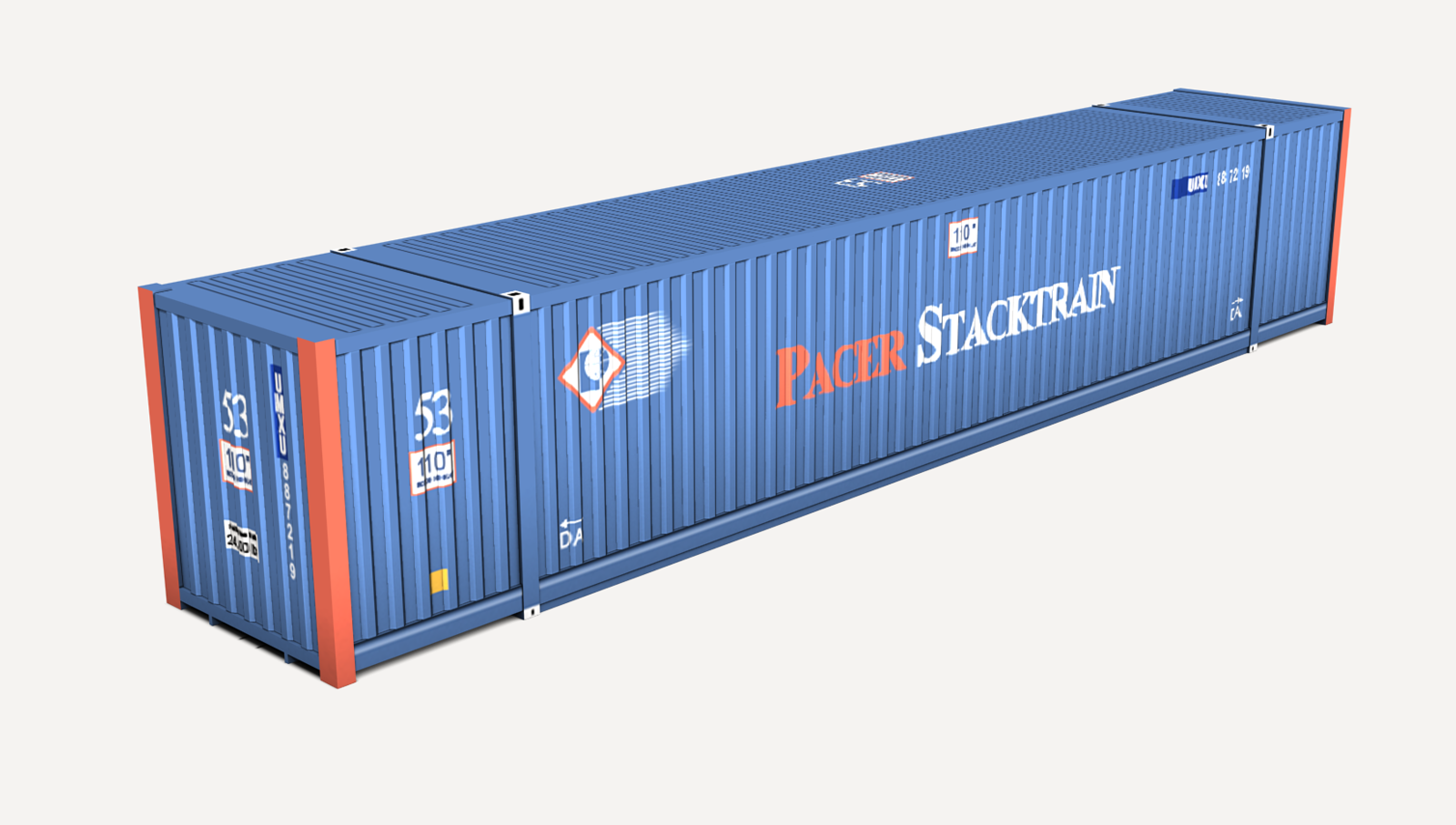 The 53-foot long by 102-inch wide domestic container is the backbone of contemporary intermodal fleets. Modern container fleets come in a mix of railroad-owned and third-party logistics (3PL) providers. The majority of containers are manufactured overseas in China with CIMC and Singamas being two of the biggest manufacturers.