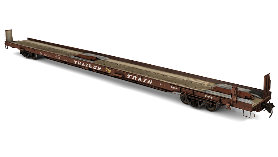 As 40' long trailers became legalized on the interstate, older, shorter, flatcars could not load two 40' trailers on a flatcar at once. Pullman Standard introduced the first 85' flatcar in 1958 to accommodate the new 40' trailer length standard. One of the innovations of these piggyback flatcars are their standardized ACF screw-operated hitches. In 1958, hitches were still a relatively new technology, and before the standardized hitch, trailers were secured to a flatcar by chains. Earlier F85B flatcars had bars located on their side-sills to allow for trailers to still be secured by chains. Loading trailers onto flatcars at the time was done "circus-style." Circus-style loading involved moving the string of piggyback-flatcars to a ramp for loading and unloading. Trailers would then be reversed onto the flatcars and their appropriate hitch one by one. To aid in this process, F85B flatcars had "rub-rails" to help align and keep the trailers straight while loading.
